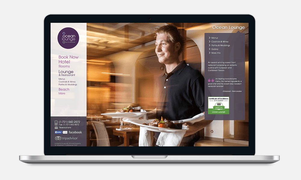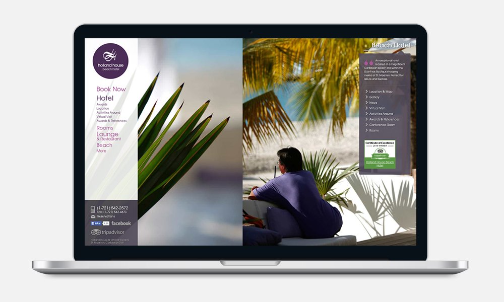 The Holland House Website features a unique full screen image gallery across all the pages. It won the admiration of several marketing blogs, and of course fullfills its mission by attracting guests, making the hotel full almost all year long!