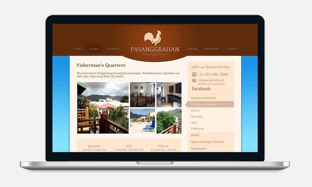 Featuring the oldest hotel of St. Maarten, the Website offers a clear overview of the rooms and their prices.