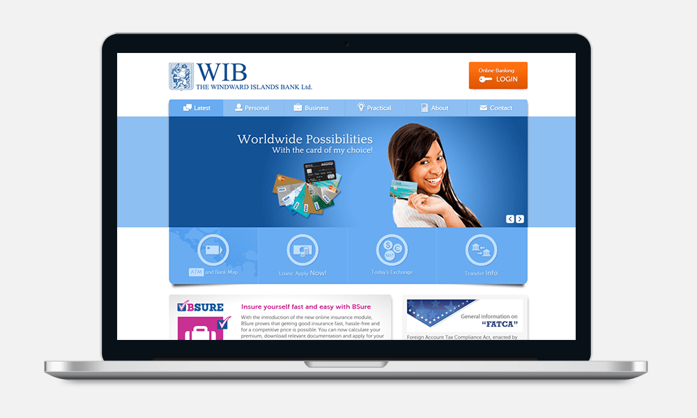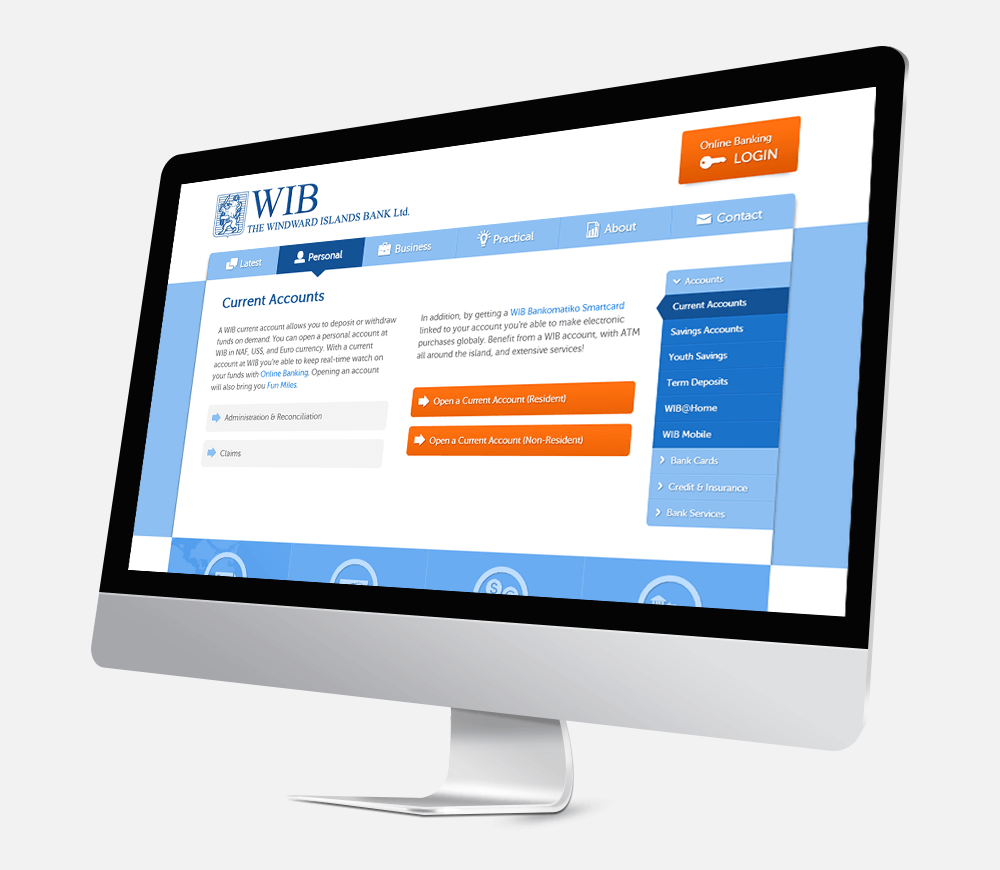 Each page of the WIB's Website was thought with a purpose. The orange buttons guide the visitors to actions. The site exposes the large pannel of services proposed by the bank. The top and left menus are also used as a smart pathway to facilitate a smooth and easy navigation. The site was built with the bank's security standards.